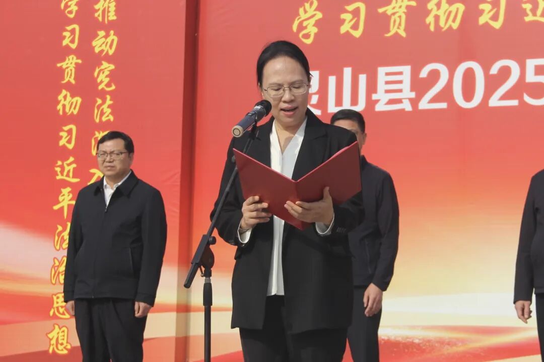 县委常委、宣传部部长胡华庆在致辞中指出,要全面贯彻习近平法治思想,全面落实“谁执法谁普法”普法责任制,以此次“宪法宣传周”为契机,持续深入开展宪法宣传教育,组织形式多样的宪法宣传活动,围绕“关键少数”,开展“宪法进机关”、宪法宣誓活动,推动领导干部做尊法学法守法用法的“带头人”;围绕青少年学生,广泛开展读宪法、学宪法、讲宪法活动,培育青少年宪法意识、国家意识;围绕农村群众,广泛开展“宪法进乡村”活动,不断提升普法针对性、有效性,努力让广大人民群众感受到宪法的精神和法治的力量。