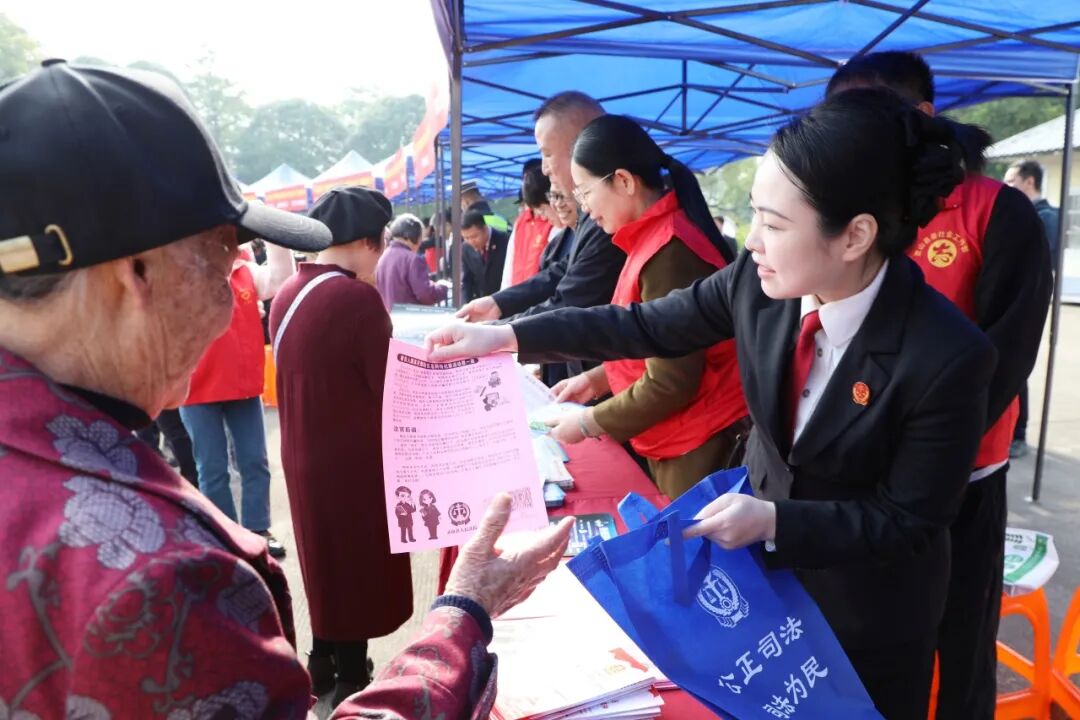 启动仪式结束后,主题宣传活动随即展开。各参与单位通过展出宣传展板、悬挂法治横幅、设立法律咨询台、现场互动问答、发放宣传资料等多元形式,构建起全方位的普法阵地。县司法局组织的“宪法宣传小分队”带着图文并茂的宣传折页,用通俗语言为群众解读宪法核心条款,让宪法精神真正走进日常生活;律师事务所代表则在咨询台前耐心接待群众,针对婚姻财产分割、劳动报酬追索、邻里纠纷调解等民生热点问题提供“一对一”专业解答,将法律条文转化为群众听得懂的维权指南;县市场监管局、农业农村局等部门结合灵山发展实际,通过案例剖析、政策解读等方式开展专题宣讲,重点普及优化营商环境、乡村振兴领域的法律法规,助力群众明晰权益边界。据统计,活动现场累计发放宣传资料2万余份,配套赠送印有法治标语的购物袋等实用物品,现场解答群众咨询300余人次,让“沾泥土、接地气”的普法服务浸润人心。