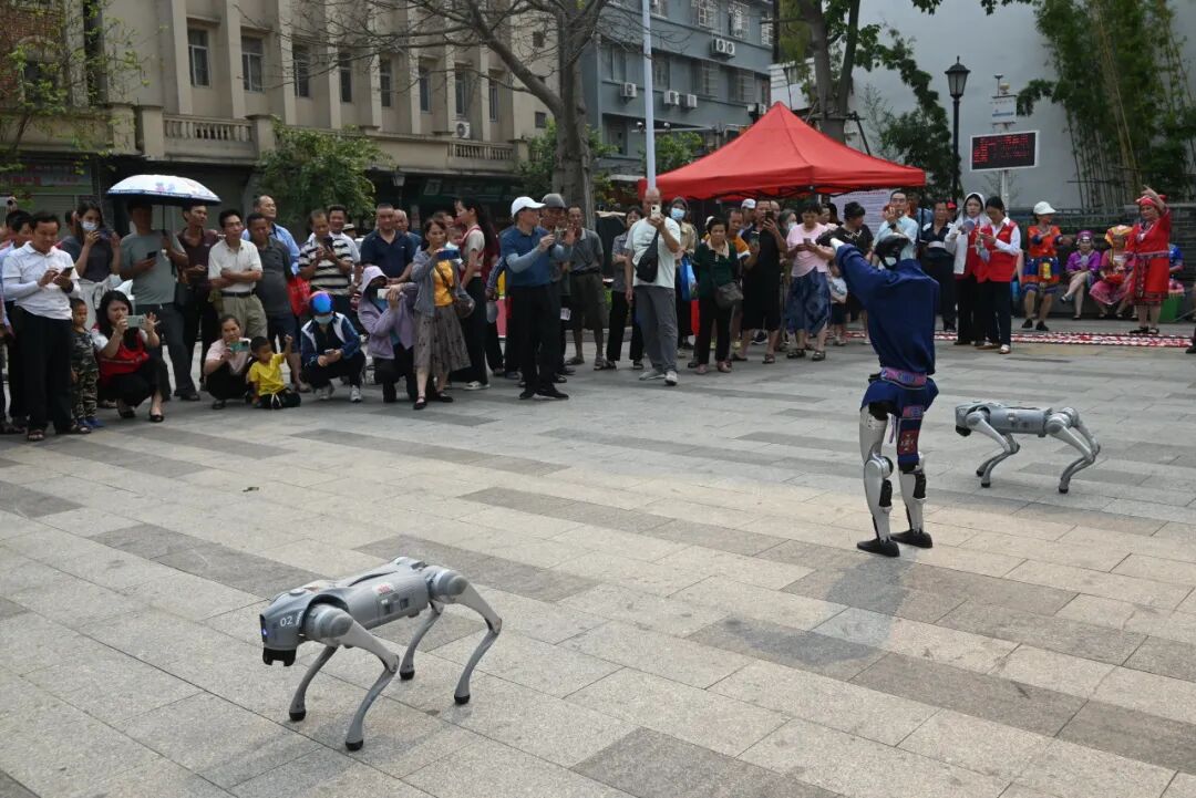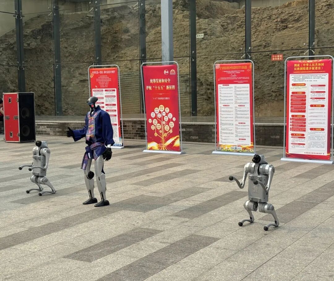 智能机器人、机器狗轮番上阵,炫酷表演吸引大小朋友驻足围观,让法治宣传更潮、更吸睛。