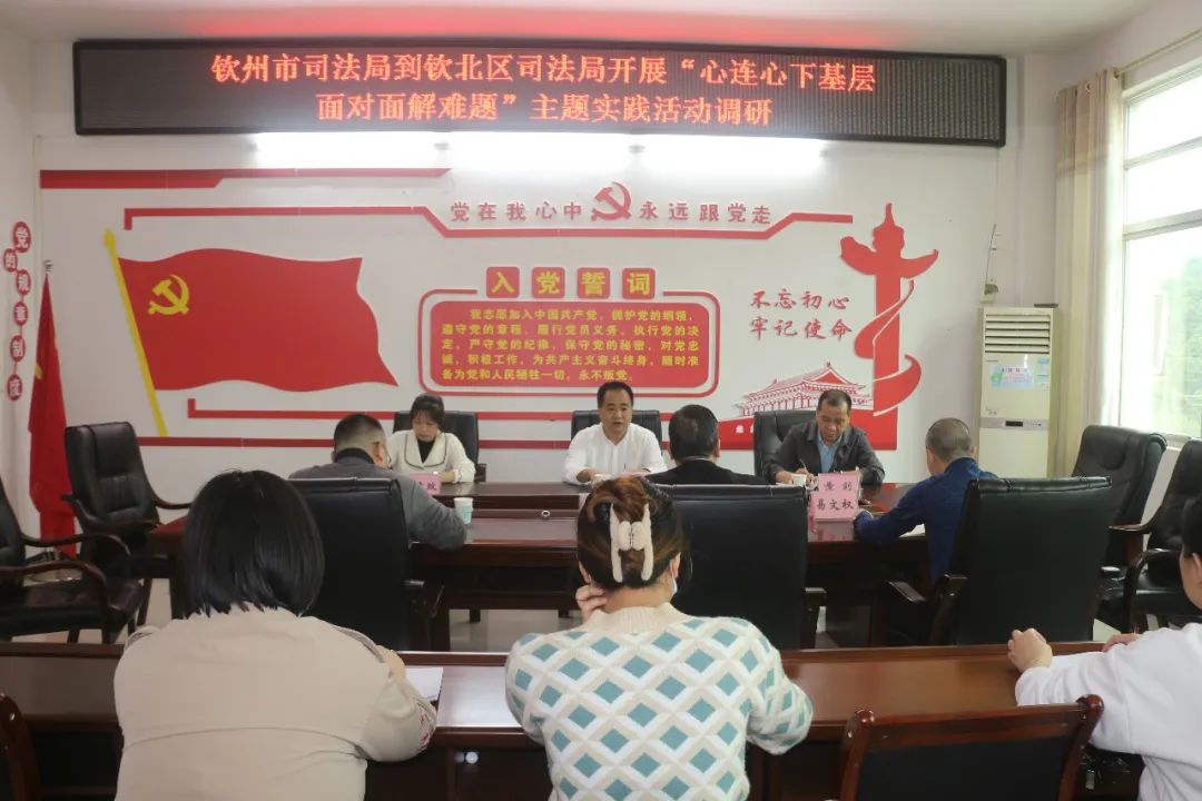 3月14日,市司法局党组书记、局长刘宇宁到钦北区司法局开展“心连心下基层 面对面解难题”主题实践活动,督查命案预防治理工作以及司法行政服务平陆运河建设工作情况。