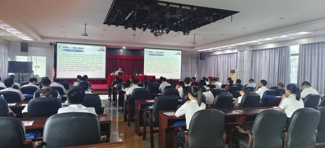 活动现场,钦州港区司法所张新华所长围绕《中华人民共和国民法典》中关于物权编、人格权编、婚姻家庭编、继承编、侵权责任编、合同编、《中华人民共和国公司法》等与企业职工息息相关的法律法规进行解读,并结合典型案例详细讲解了合同的订立、合同的效力、合同的履行、合同的变更和转让、合同的权利义务终止和违约责任等方面的内容,引导企业依法生产与规范管理,提高生产经营风险防范能力。同时,还围绕公司法修订背景、具体法律条文的修订要点等重点事项,通过新旧法条对比,梳理了公司法对国有企业治理的影响及应对措施。