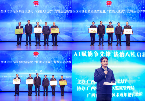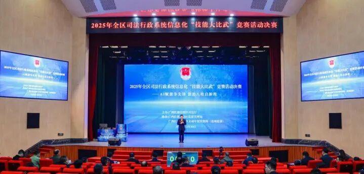 为深入学习贯彻党的二十届四中全会精神,贯彻落实习近平总书记关于人工智能的重要论述和关于广西工作论述的重要要求,2025年12月30日,自治区司法厅在南宁举办2025年全区司法行政系统信息化“技能大比武”竞赛活动决赛。本次活动以“AI赋能争先锋 法治八桂启新程”为主题,经过前期的初赛挑选出来自全区司法行政系统的16支队伍参赛。活动邀请11位行业领域专家组成专家评审组对参赛项目进行现场打分。各参赛队伍通过现场演示、专家提问答辩的方式进行角逐。