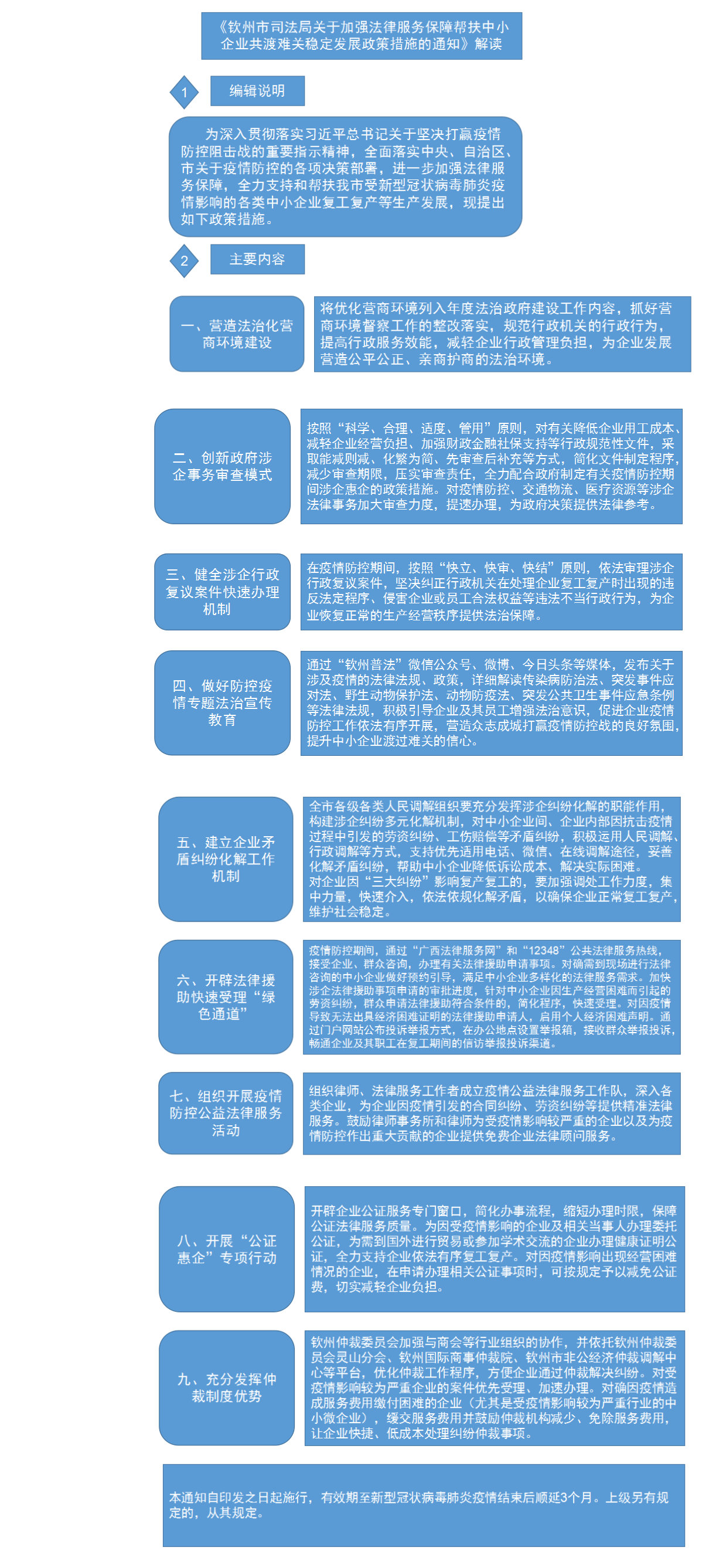 图解:《钦州市司法局关于加强法律服务保障帮扶中小企业共渡难关稳定发展政策措施的通知》