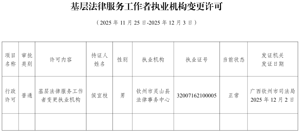 基层法律服务工作者执业变更许可(侯宜枝)